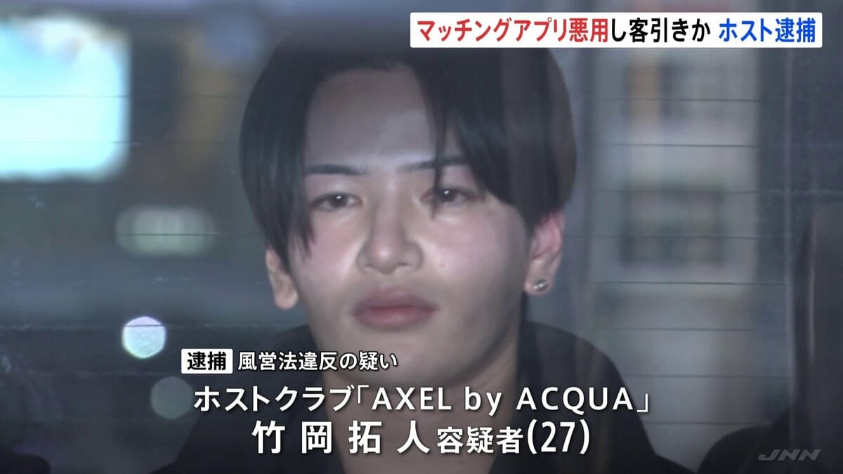 「マチアプで距離を詰める → 実はホストと明かす → 店に来させる → 客引き(風営法違反の疑い)で逮捕」